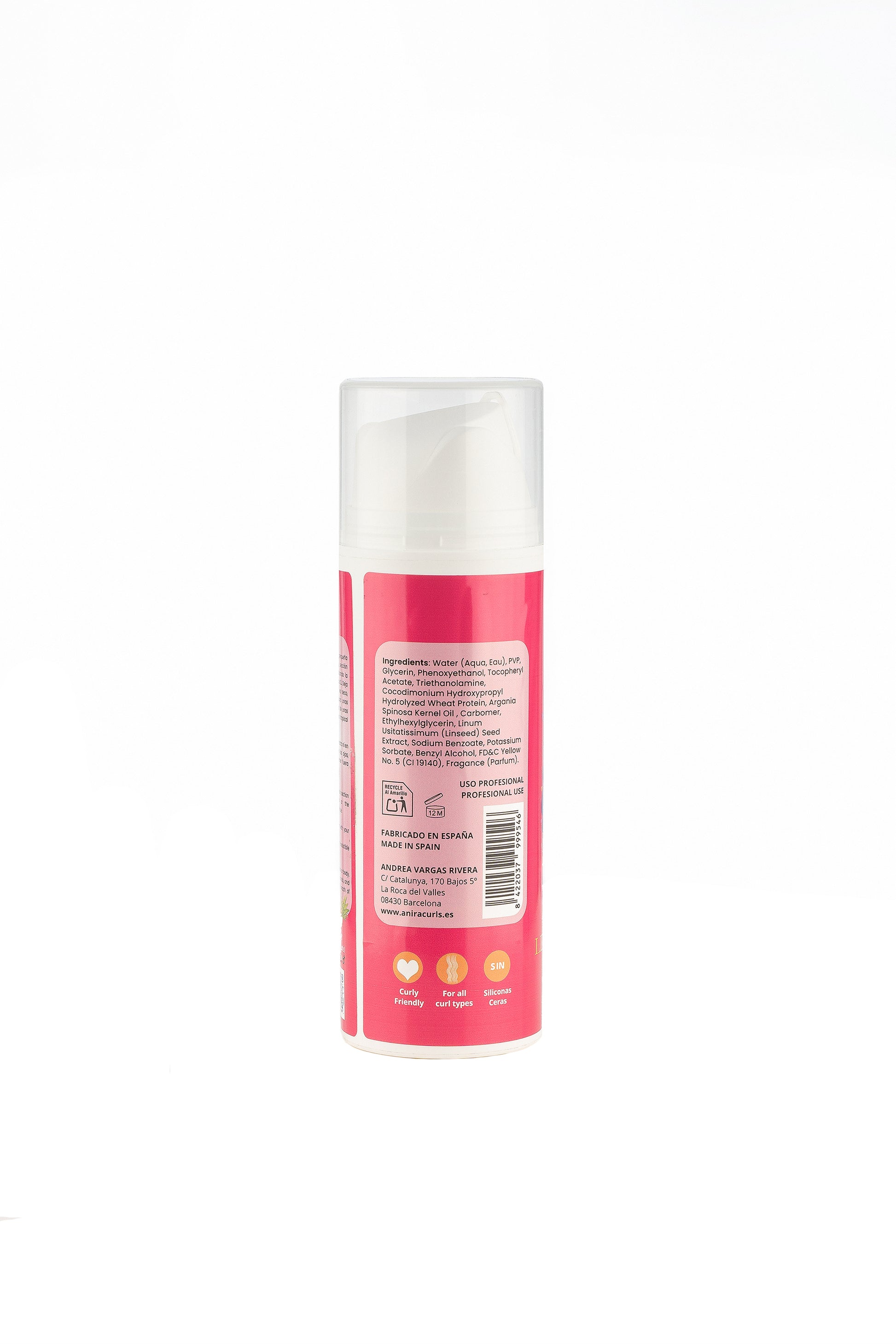 Su fórmula, con aceite de argán, extracto de lino y un toque de fragancia a piña, ofrece definición intensa, brillo natural y una fijación duradera sin apelmazar, sin residuos y sin siliconas. Ideal para todo tipo de rizos, desde ondulados hasta afro, 100% compatible con el Método Curly.